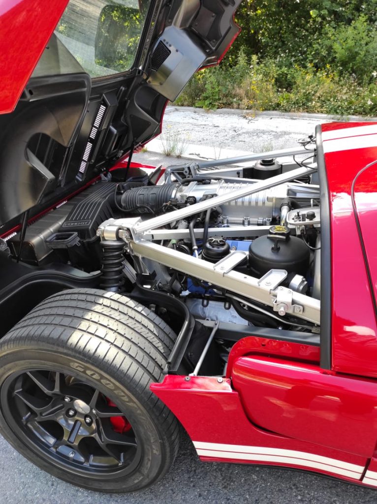 Este Ford Gt del 2005 cuenta con un motor DOHC v8, una potencia de 550 caballos a 6500 revoluciones, carrocería de aluminio, 6 marchas manuales, llantas de aleación forjadas BBS y con un bajo kilometraje de tan solo 5000km. Alcanza una velocidad de 330 km/ hr. y maximiza su potencia en 3,5 seg. de 0 a 100 km/hr